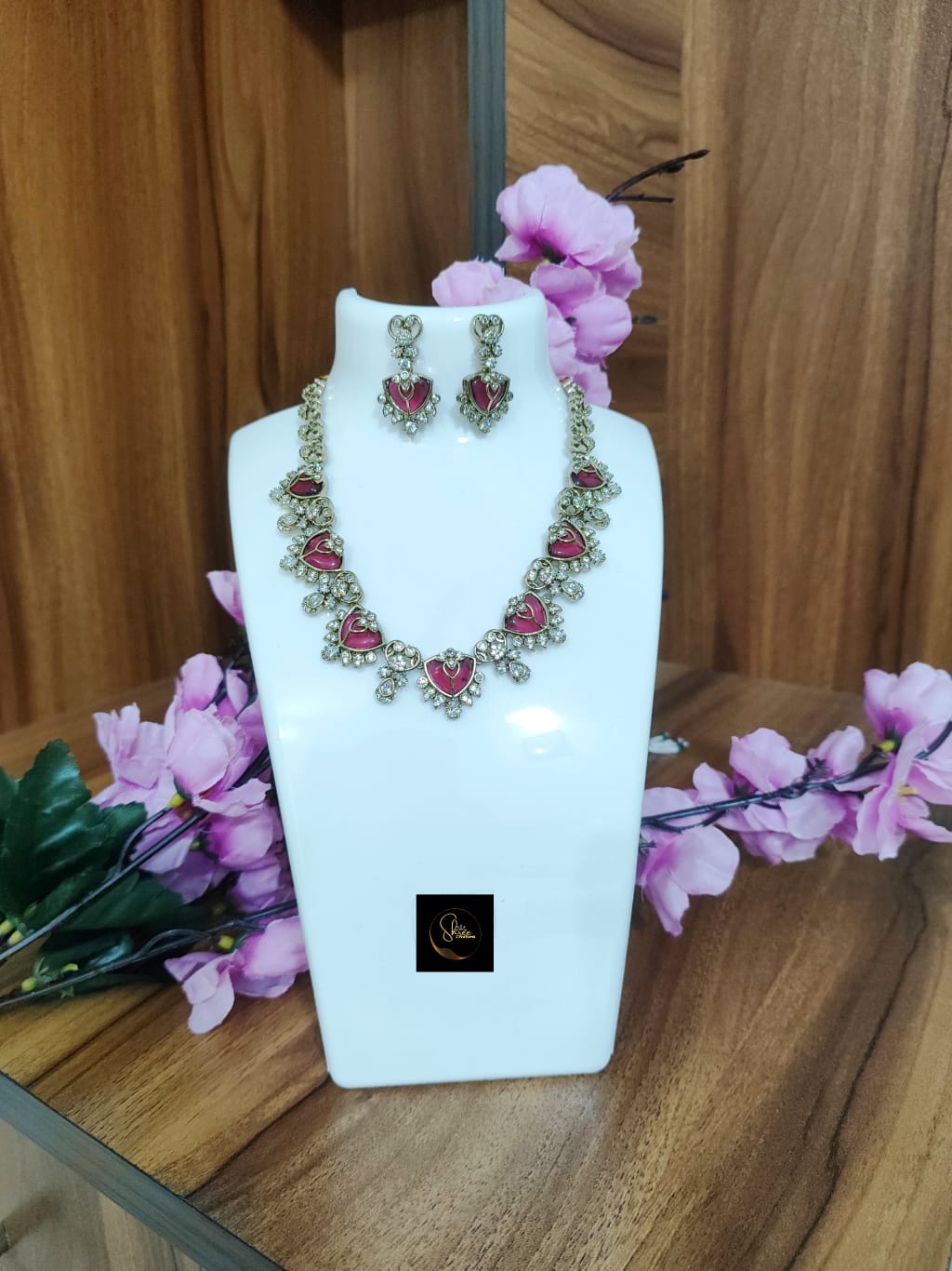 Mehendi Polish CZ stone Necklace set with Pink stone
